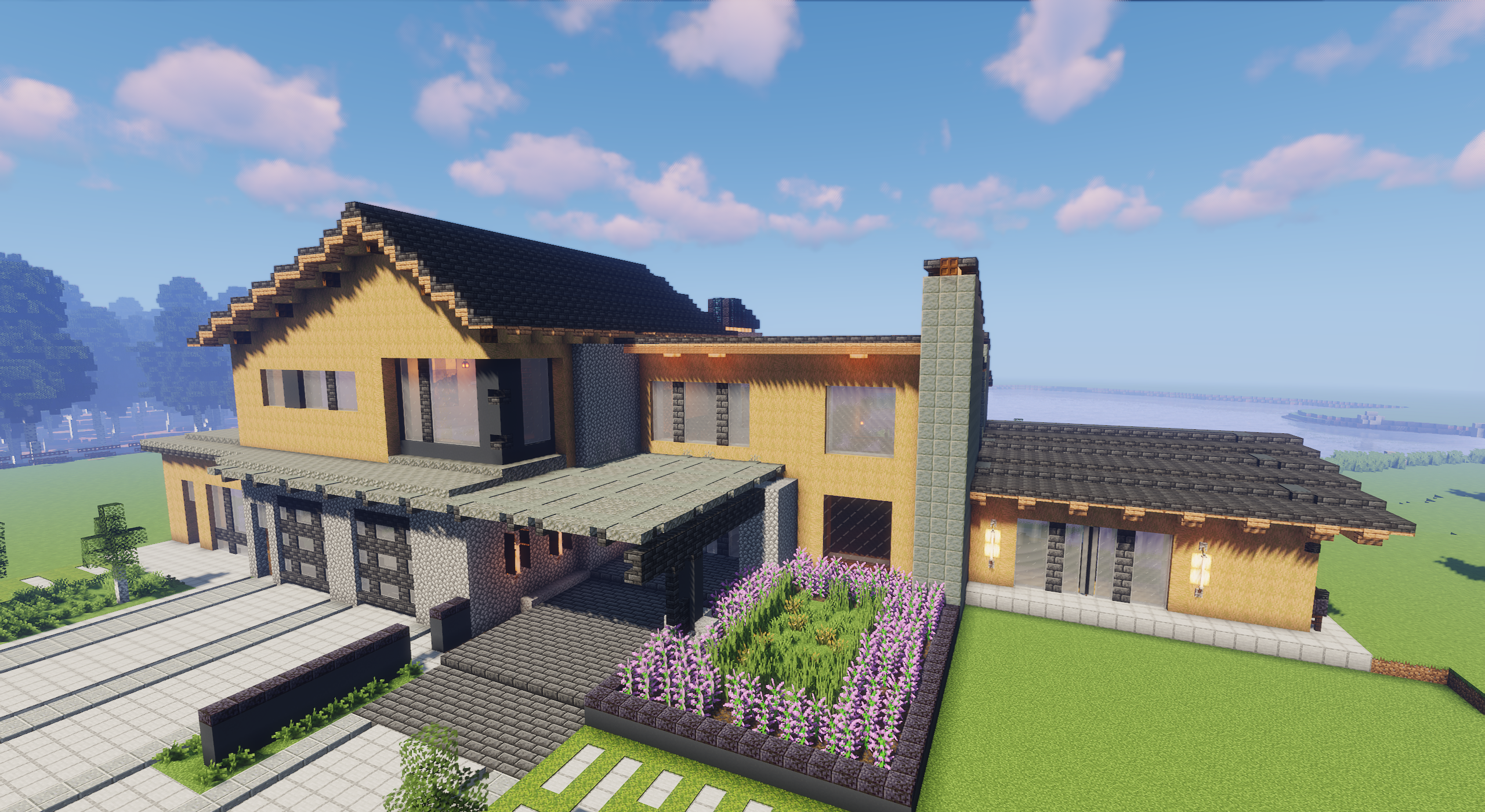 Интересно, что мир предоставляет готовую инфраструктуру, не требующую доработок для выживания — достаточно расставить сундуки и организовать производство ресурсов. Дом подойдёт как личная база, так и как общественный центр для небольшого сервера, благодаря просторным зонам вокруг воды.