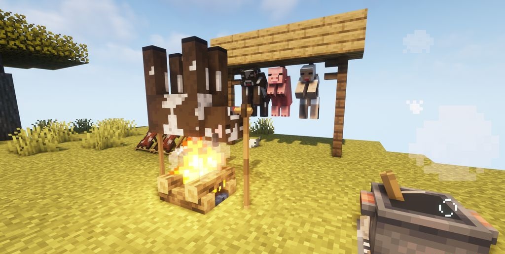 Мод Butcher’s Delight полностью меняет отношение к охоте и добыче еды. Теперь мясо и шкуры — это результат полноценного процесса, а не мгновенная награда. Животных нужно правильно обрабатывать: туши подвешиваются, разделываются и готовятся с использованием специальных инструментов. Каждый этап требует времени и внимания, что делает выживание более реалистичным и продуманным.