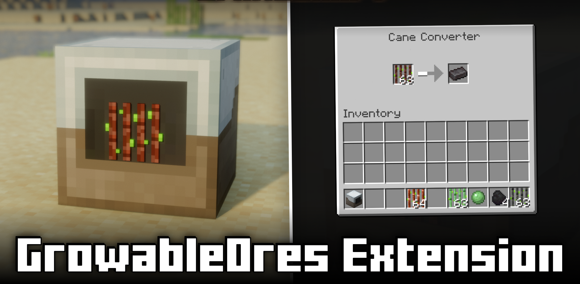 Фермерство и добыча руд наконец встретились. GrowableOres Extension расширяет функционал оригинального мода, добавляя блок под названием Cane Converter, с помощью которого можно перерабатывать рудные тростники в настоящие слитки. Алмазный, незеритовый, золотой — любой тростник превращается в минерал, избавляя вас от бесконечных шахтных походов.