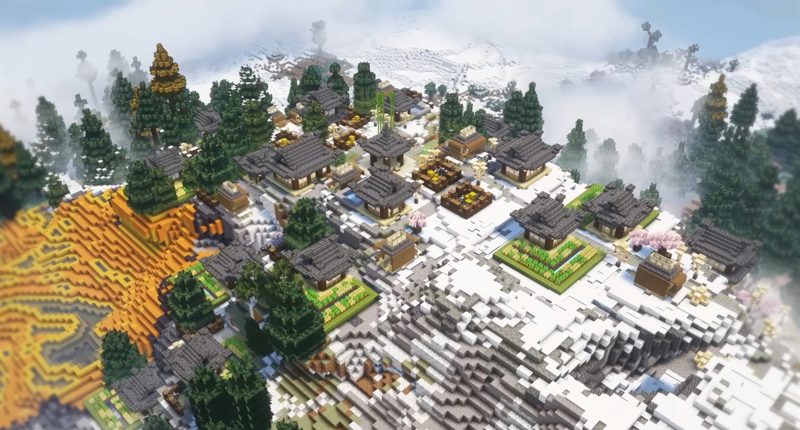 Деревни и аванпосты начинают выглядеть как полноценные поселения, а не случайный набор зданий. Overhauled Village значительно расширяет их размеры, добавляет десятки вариантов и адаптирует внешний вид под конкретные биомы. Планировка становится логичнее, здания — масштабнее, а декоративные элементы подчёркивают региональные особенности.