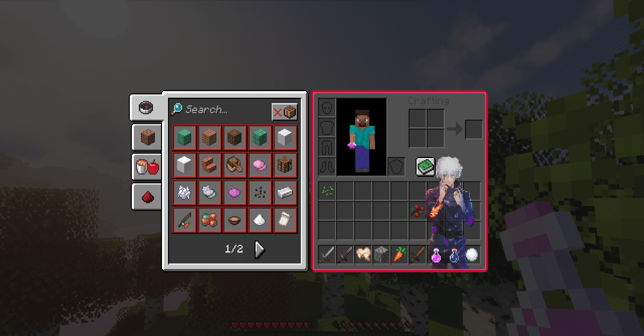 Интерфейс в Майнкрафт обычно остаётся нейтральным элементом, который редко влияет на общее впечатление от игры. Однако Jujutsu Kaisen Custom GUI полностью меняет это восприятие, превращая HUD и меню в важную часть атмосферы. Каждый элемент интерфейса — от полос здоровья до ячеек инвентаря — оформлен в тёмной, напряжённой эстетике, пропитанной ощущением проклятий и скрытой угрозы.